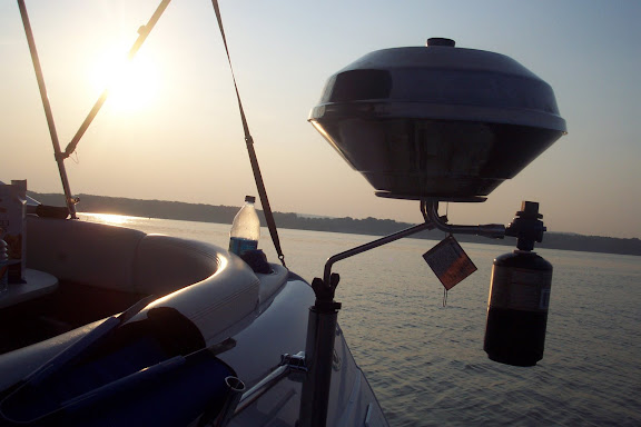 I originally had the fishing rod mount which I used on the swim platform but with the grill mounted it was dangerous to move around when that grill was hot so I wanted something that gave me flexibility to be able to install and remove it. I went with the Flush Deck Rotating Socket Mount (A10-126). The stainless detent pin lets the grill rotate and lock in 8 different positions allowing it to be moved inboard and outboard. It is super simple to remove and has a rain cap for when not in use.